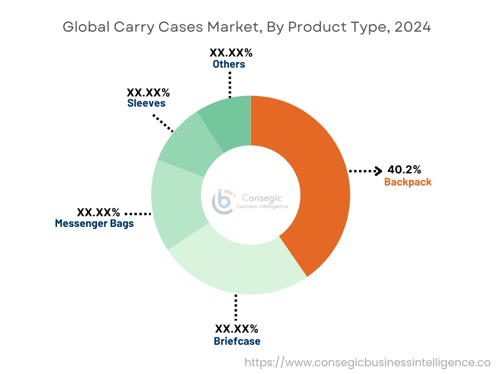 Based on the product type, the market is classified into Backpack, Briefcase, Messenger Bags, Sleeves, and Other.
