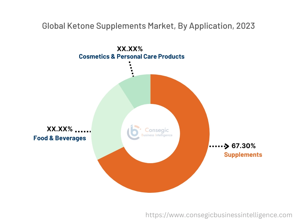 Based on the application, the ketone supplements market is segmented into supplements, food & beverages, and cosmetics & personal care products.