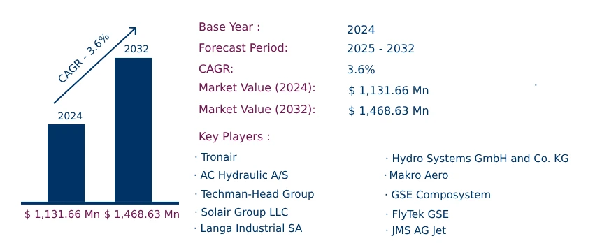 As per the Consegic Business Intelligence newly published report, the Aircraft Jack Market was valued at USD 1,131.66 million in 2024 and is projected to grow at a CAGR of 3.6%, reaching USD 1,468.63 million by 2032. Aircraft jacks are specialized lifting devices designed to support various aircraft types during maintenance, repair, and inspection activities. These jacks enhance operational efficiency by providing a stable and secure platform for aircraft servicing. Their demand is rising due to increasing aircraft MRO (maintenance, repair, and operation) activities globally and advancements in aircraft manufacturing.